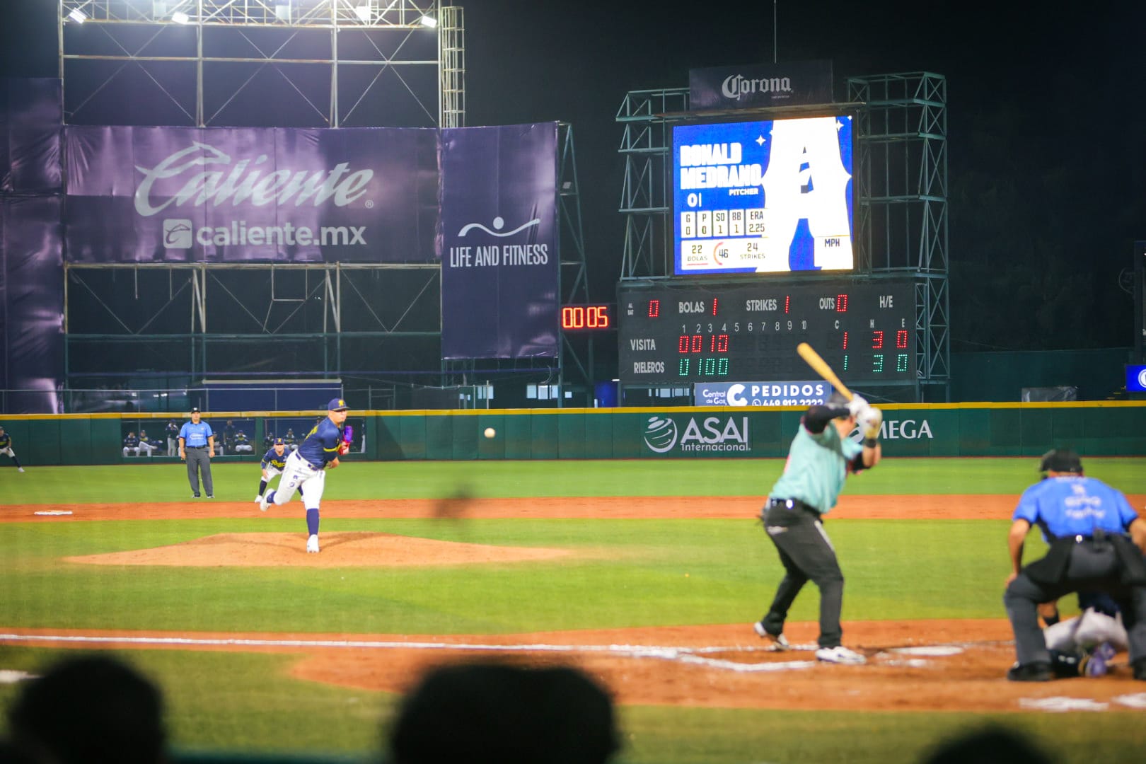 Rieleros tomó la ventaja en la segunda entrada con un jonrón solitario de Leonel Valera por el jardín central, sin embargo, la respuesta del sarape fue inmediata, ya que en la tercera entrada Cole Roederer igualó la pizarra 1-1 con vuelacerca por el jardín derecho.